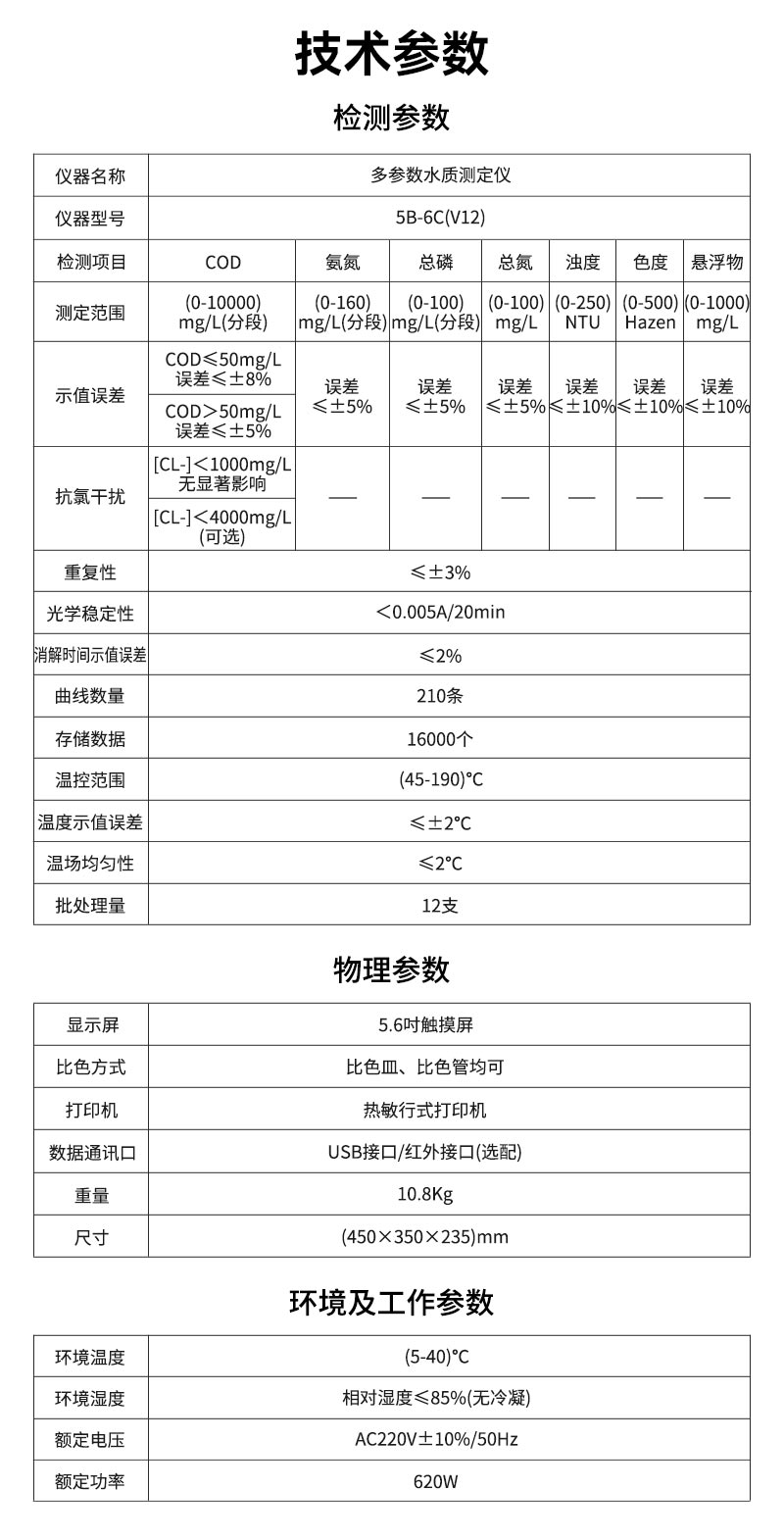 2.儀器型號:5B-6C(V12)